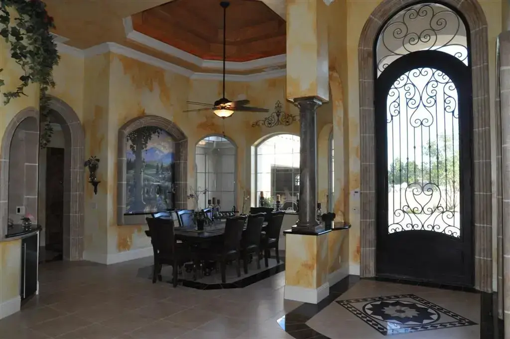 6 inch thick of monolithically poured concrete wall with 2 3/4 inches of Styrofoam attached to each side, resulting in a 12 inch thick exterior wall, makes this house solid, long lasting, quite, termite and mold resistant. The Tuscan style home has many energy saving features such as triple pane windows in all key areas, a smart vent night cooling system, air to air heat exchange, tankless water heaters, coupled  with a 4.3 Kilowatt solar system, making this house zero energy use.